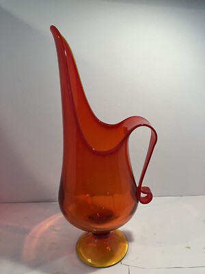 MCM LE Smith Fayette Amberina Pedestal Swung Glass Pitcher 16 eBay