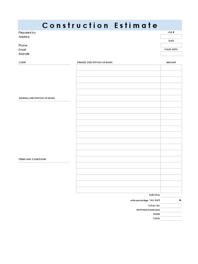 28 Perfect Construction Estimate Templates (FREE) TemplateArchive