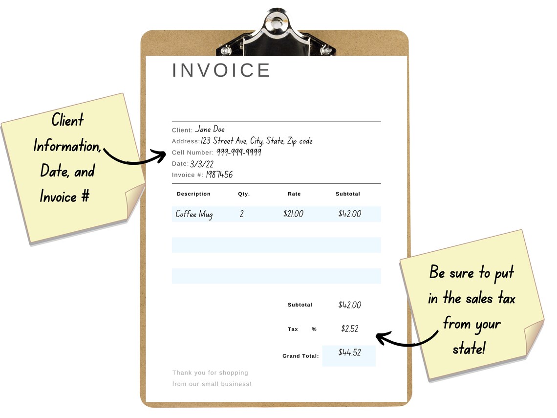 Blank Itemized Invoice Template Printable Digital Download PNG Small