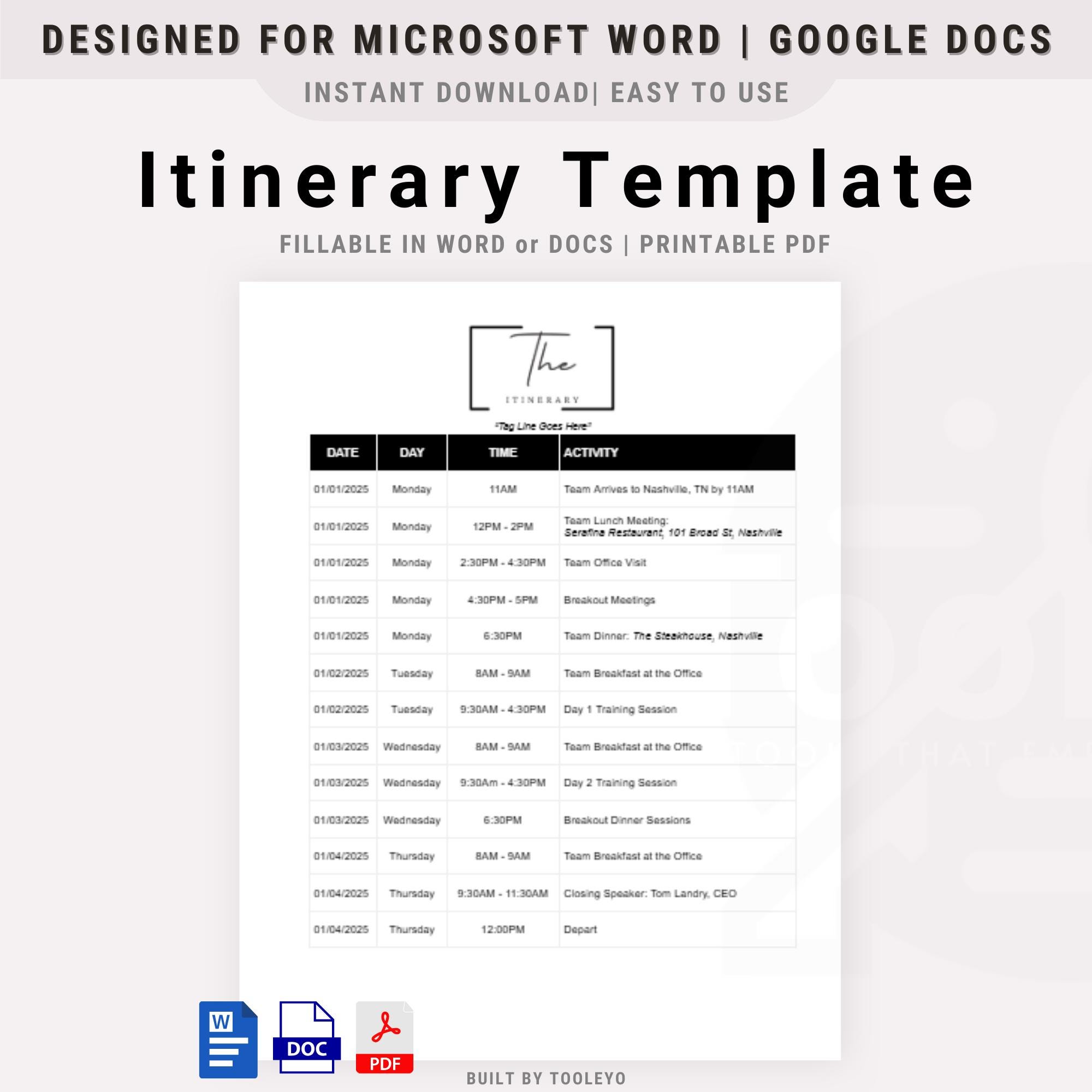 Editable Itinerary Planner Templates in Word to Download