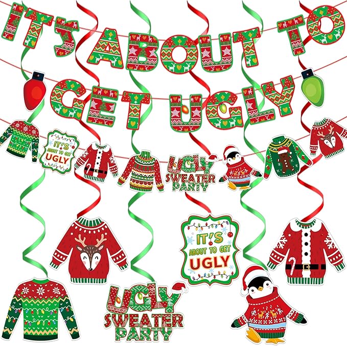 Amazon com: IT S ABOUT TO GET UGLY Banner And Ugly Sweater Hanging