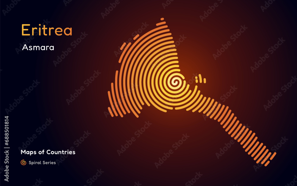 Abstract gold map of Eritrea with circle lines identifying its capital