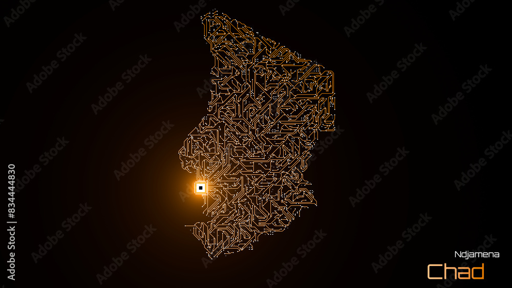 Chad Map With A Capital Of Ndjamena Shown In A Microchip Pattern With