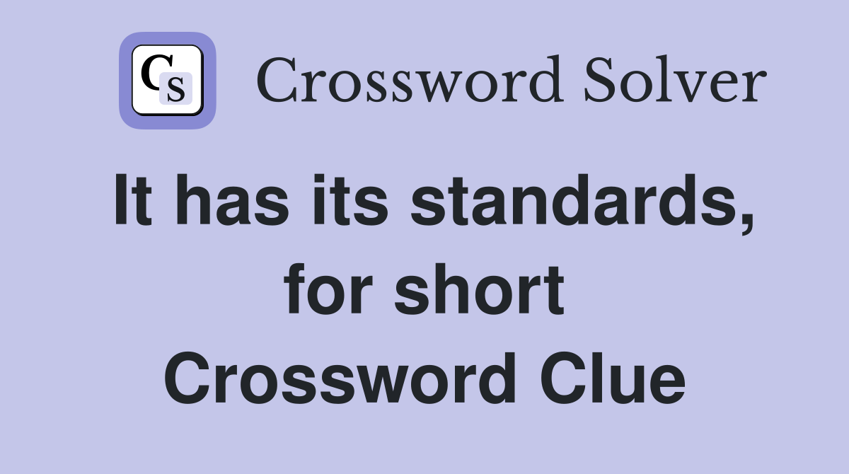 It has its standards for short Crossword Clue Answers Crossword Solver