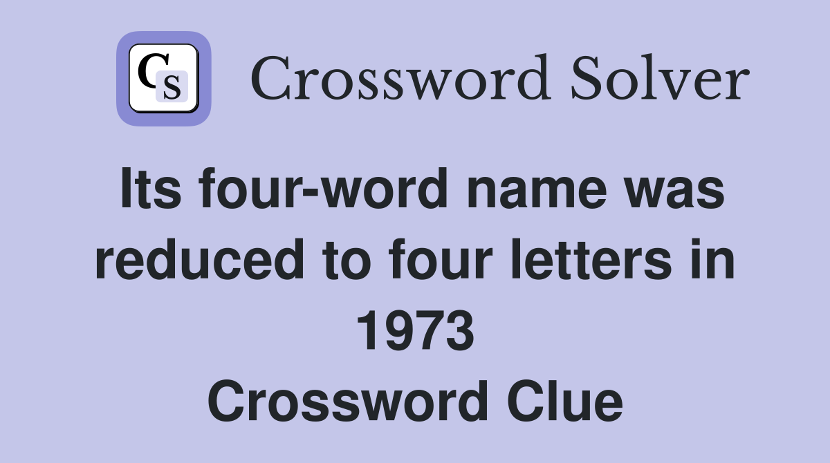 Its four word name was reduced to four letters in 1973 Crossword Clue