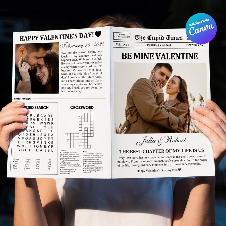 Valentines Day Newspaper Template Editable Cupid Post Canva Template