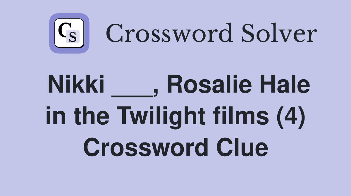 Nikki Rosalie Hale in the Twilight films (4) Crossword Clue
