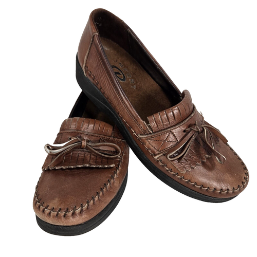 Dexter Loafer Brown Leather Shoe with Tassel Raised Wedge Heel Womens 7