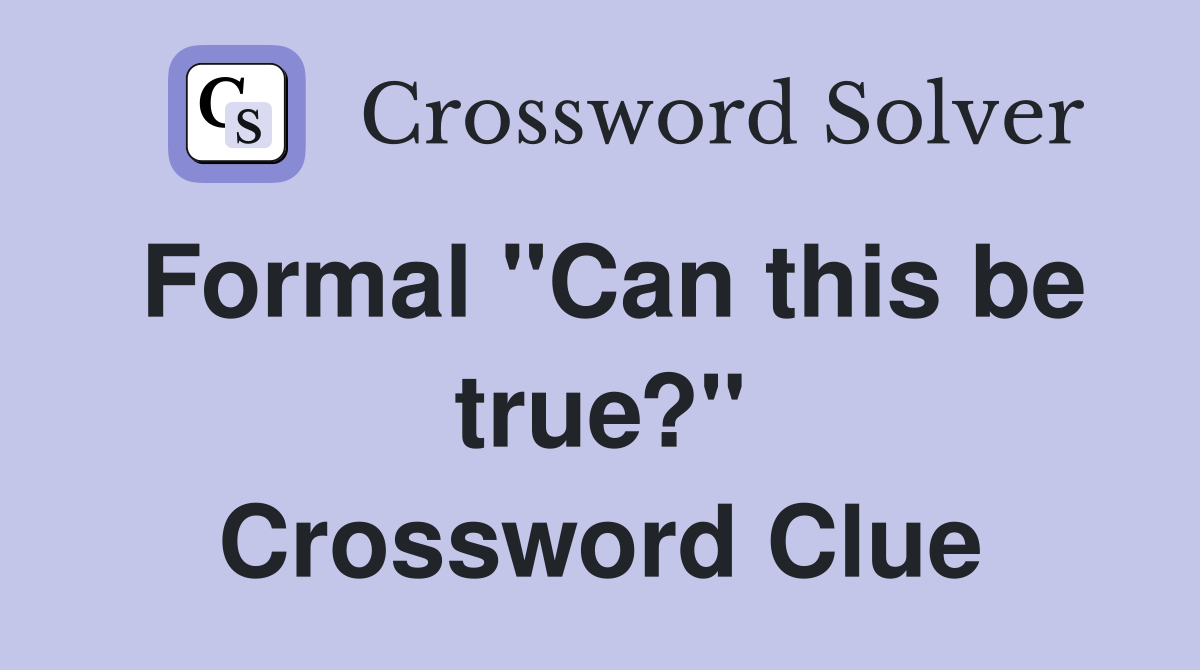 Formal quot Can this be true? quot Crossword Clue Answers Crossword Solver