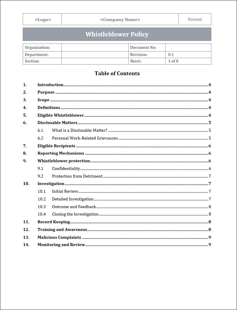 Whistleblower Policy Template ITSM Docs ITSM Documents Templates