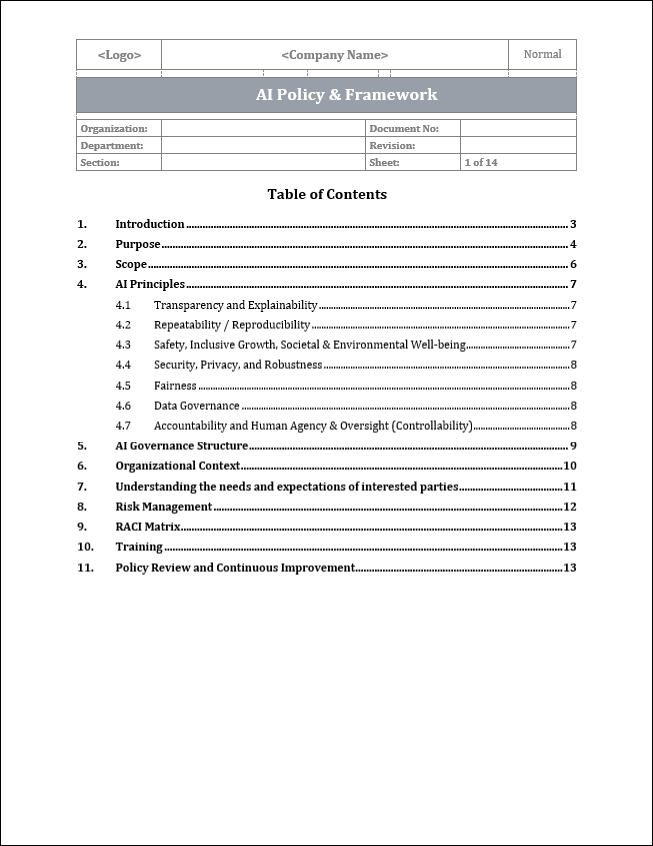 ISO 42001 AI Policy Framework Template ITSM Docs ITSM Documents