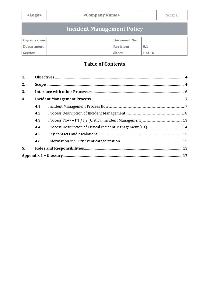 COSO Incident Management Policy Template ITSM Docs ITSM Documents