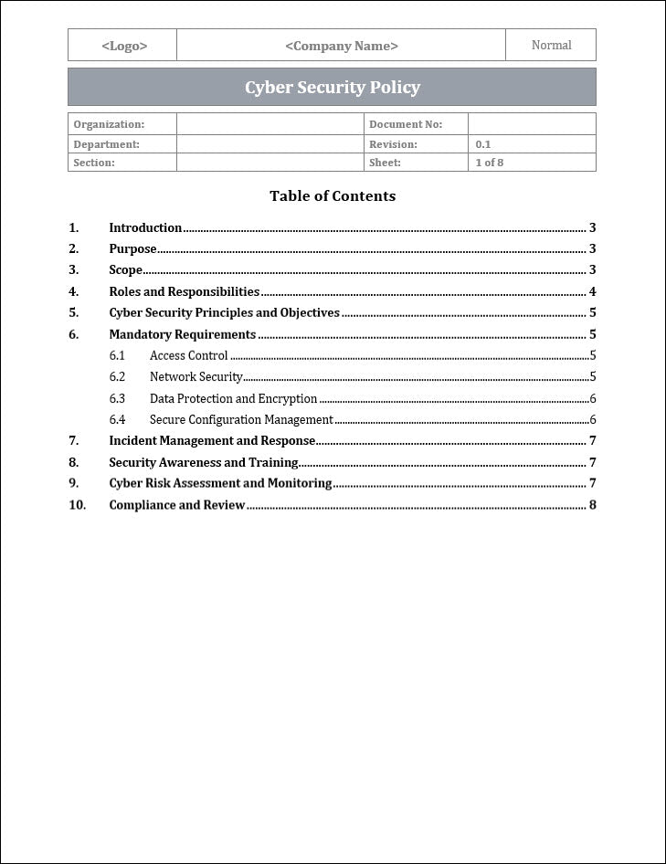 Cyber Security Policy Template ITSM Docs ITSM Documents Templates