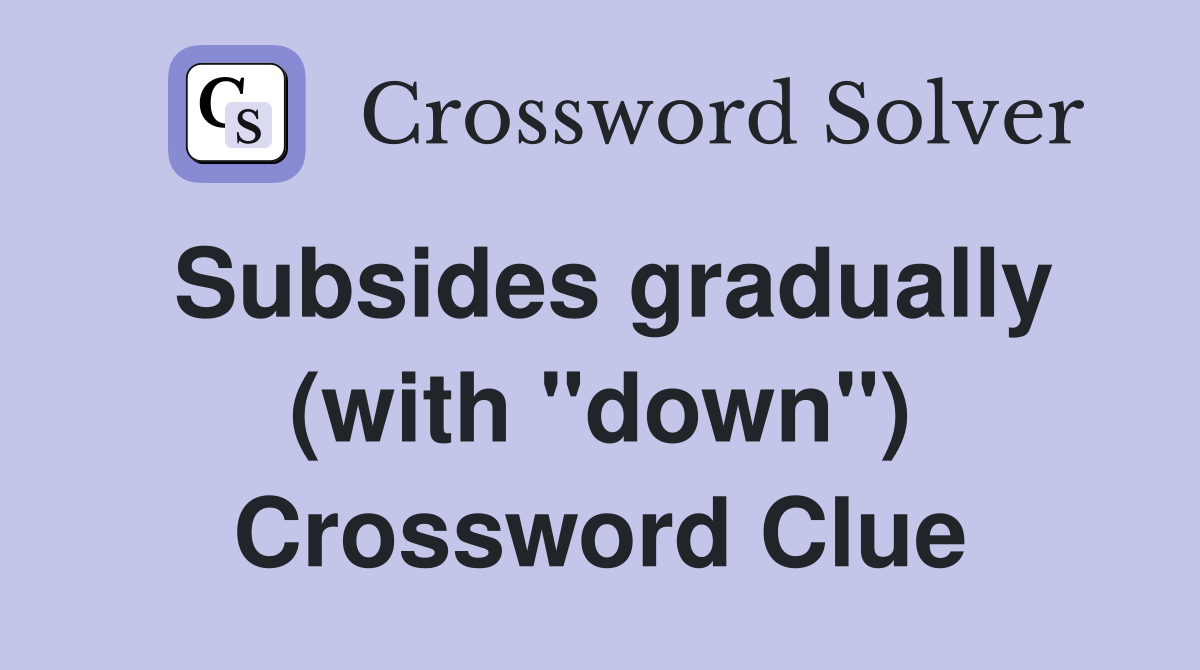 Subsides gradually (with quot down quot ) Crossword Clue Answers Crossword