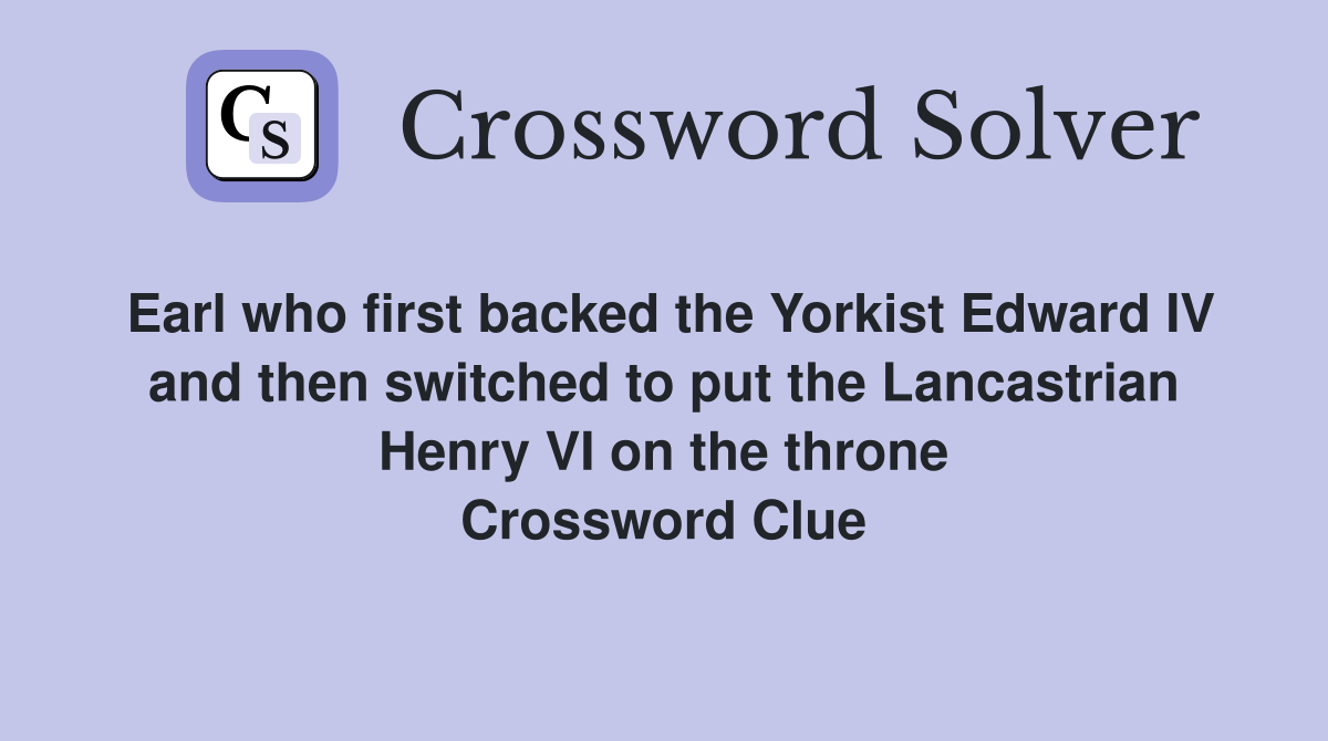 Earl who first backed the Yorkist Edward IV and then switched to put
