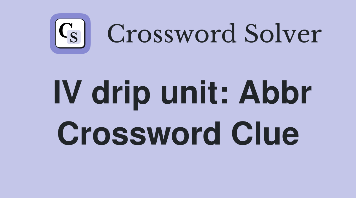 IV drip unit: Abbr Crossword Clue Answers Crossword Solver