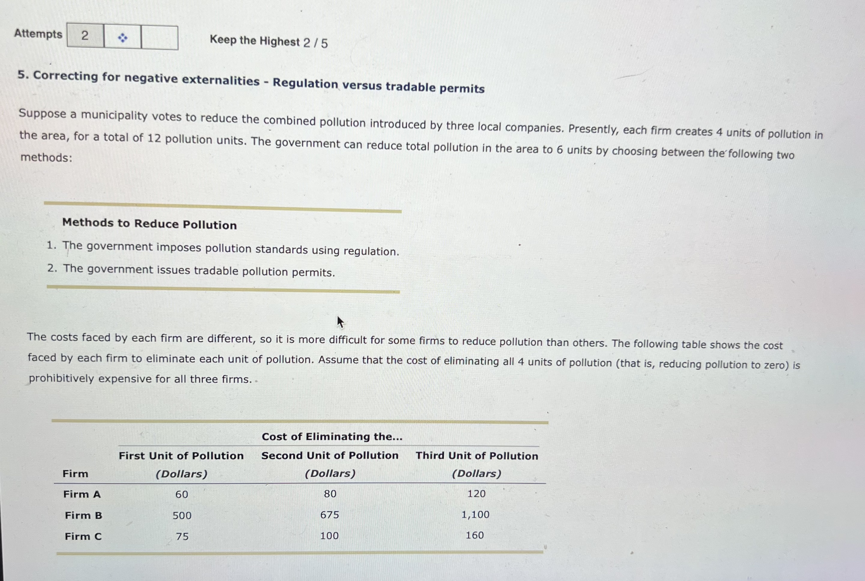 Solved 5 Correcting for negative externalities Regulation Chegg com