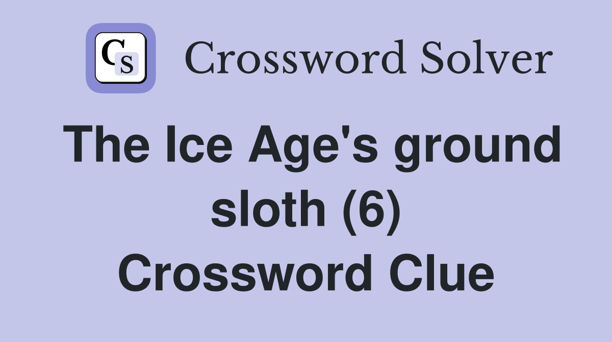 The Ice Age #39 s ground sloth (6) Crossword Clue Answers Crossword Solver