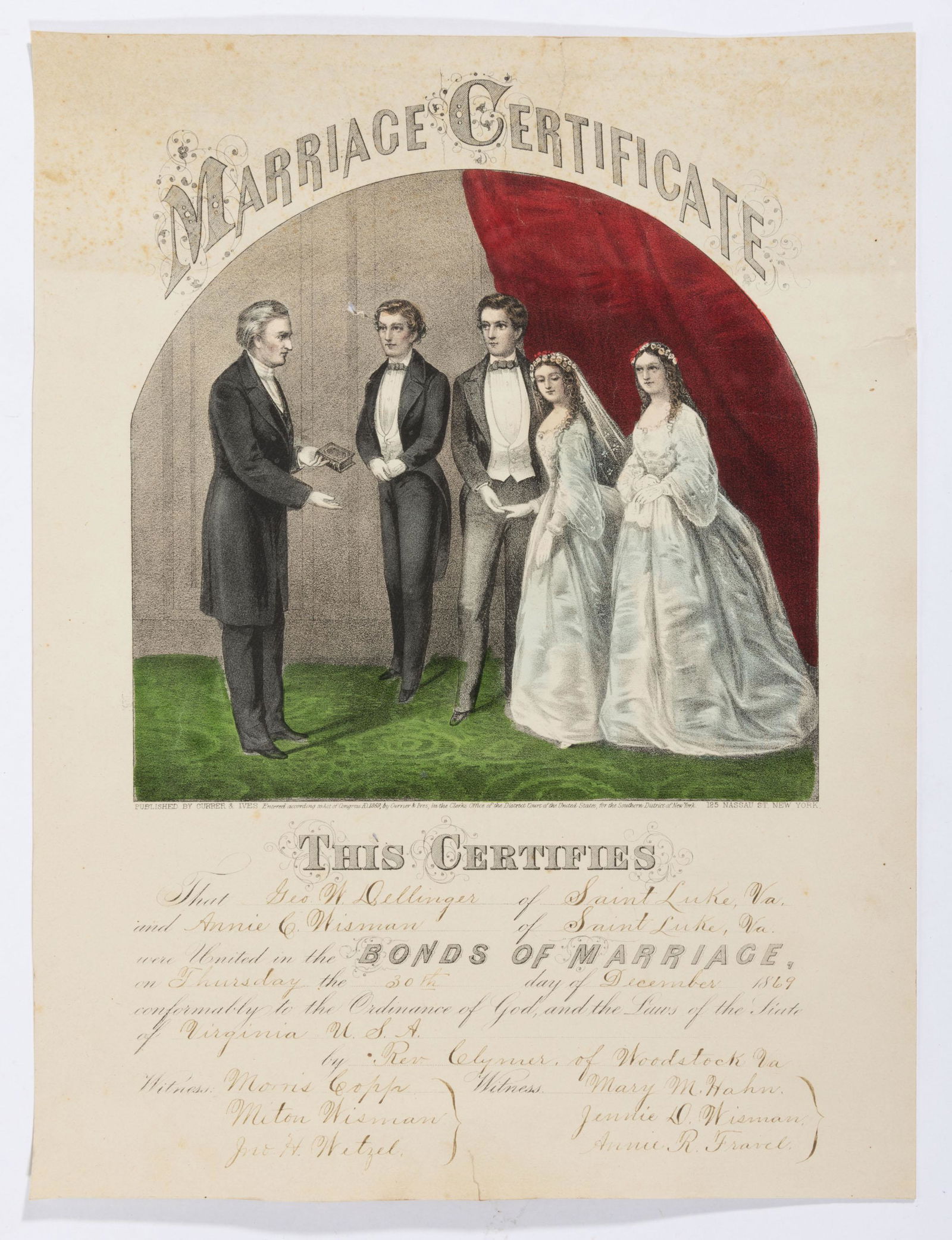 Marriage certificate 1869 by Currier and Ives Stock Photo Alamy