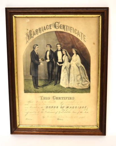 quot MARRIAGE CERTIFICATE quot Artwork by Currier Ives