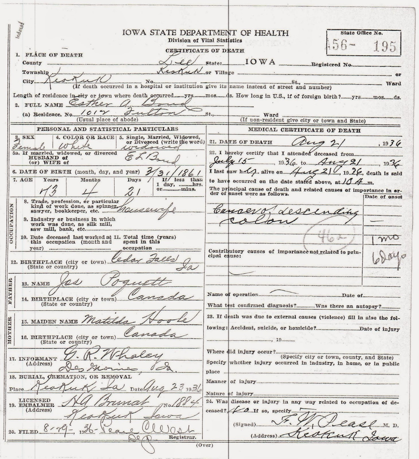 Matt #39 s Genealogy Blog: Web Searches and Iowa Death Certificates
