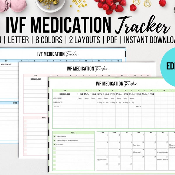 IVF Medication Tracker Editable IVF Planner Printable Ivf Calendar
