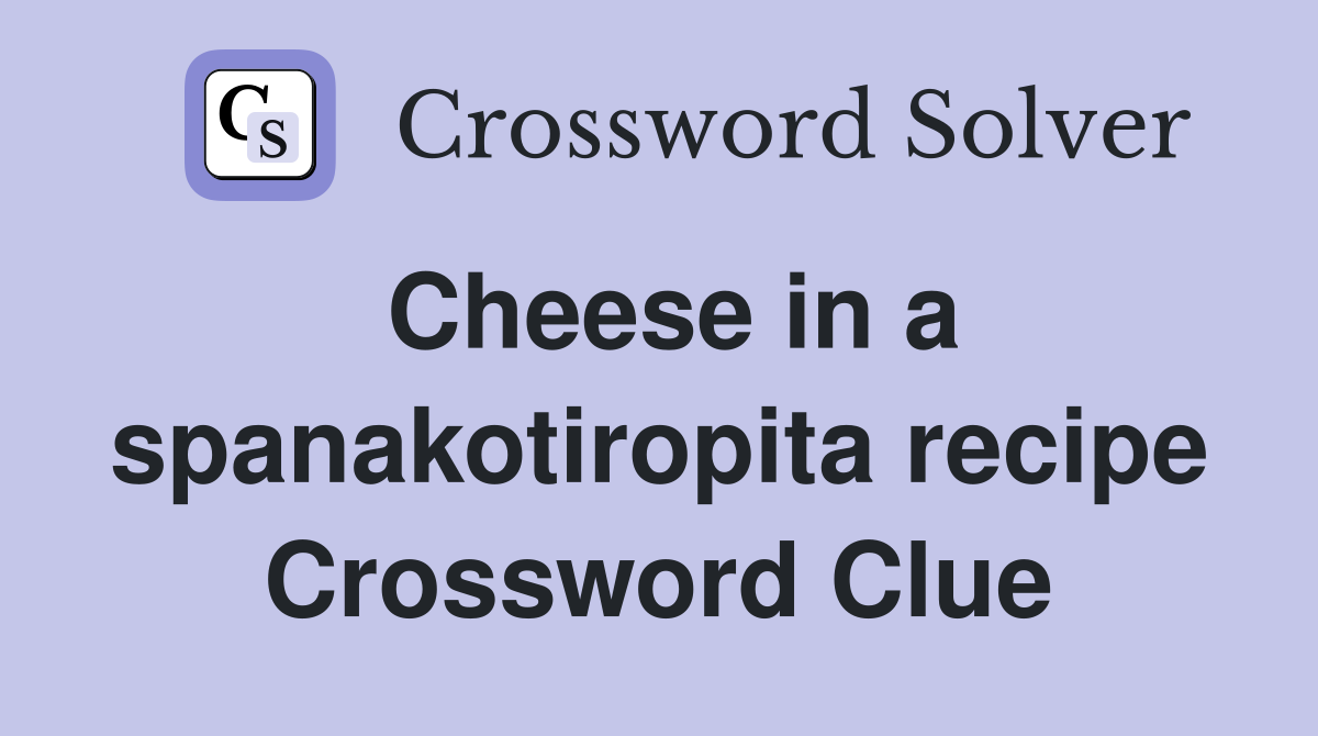 Cheese in a spanakotiropita recipe Crossword Clue Answers Crossword