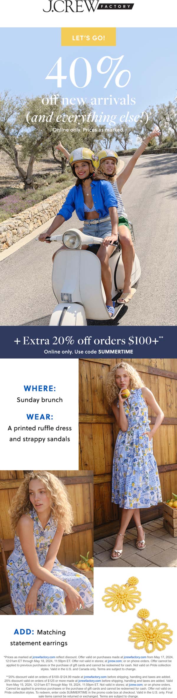 Extra 40% off new arrivals 60% off clearance online at J Crew Factory