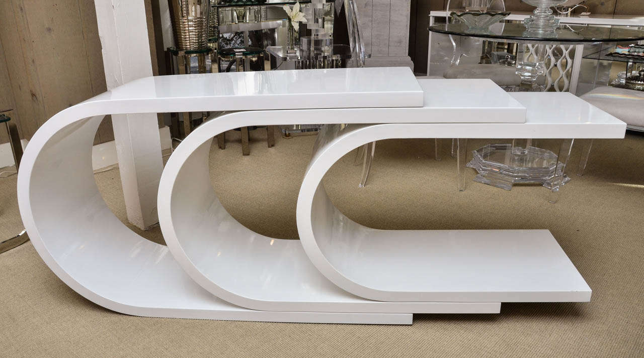 White Lacquer C Shaped Console by Baker at 1stDibs