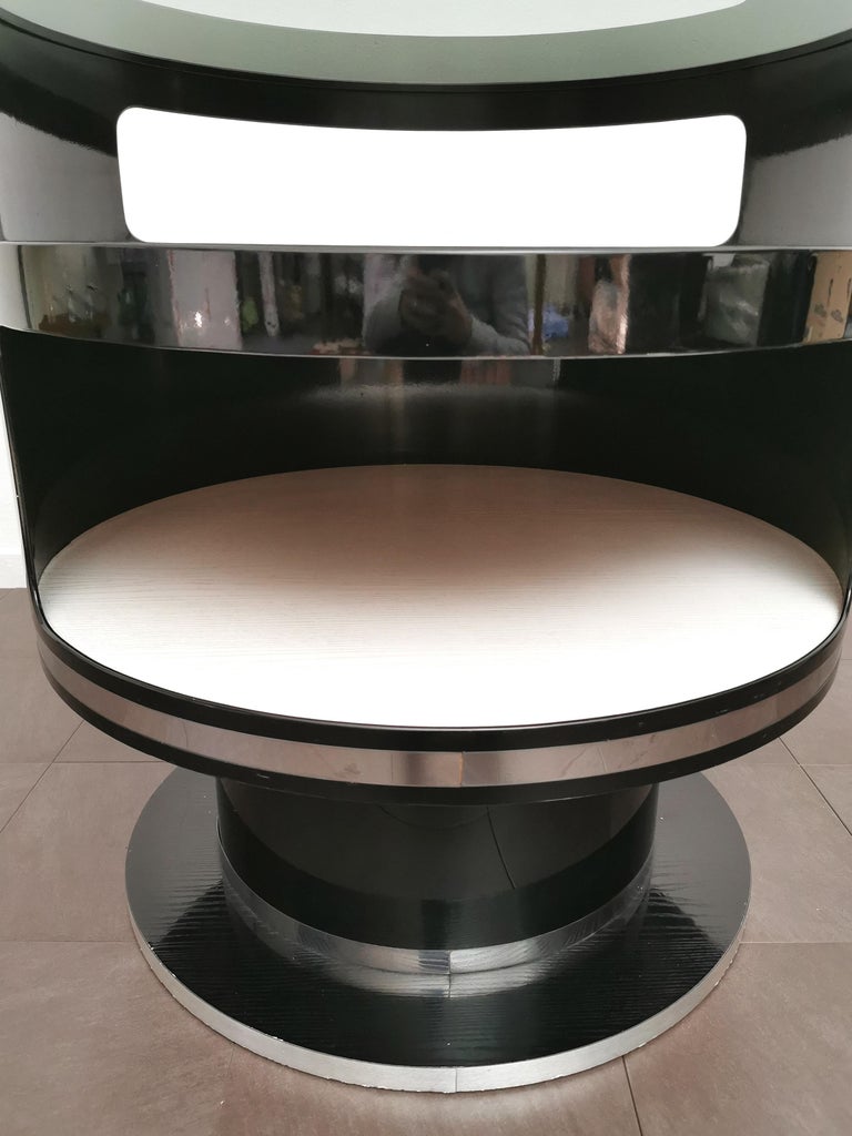 Bar Cabinet Wood Smoked Glass Attributed to Joe Colombo Midcentury