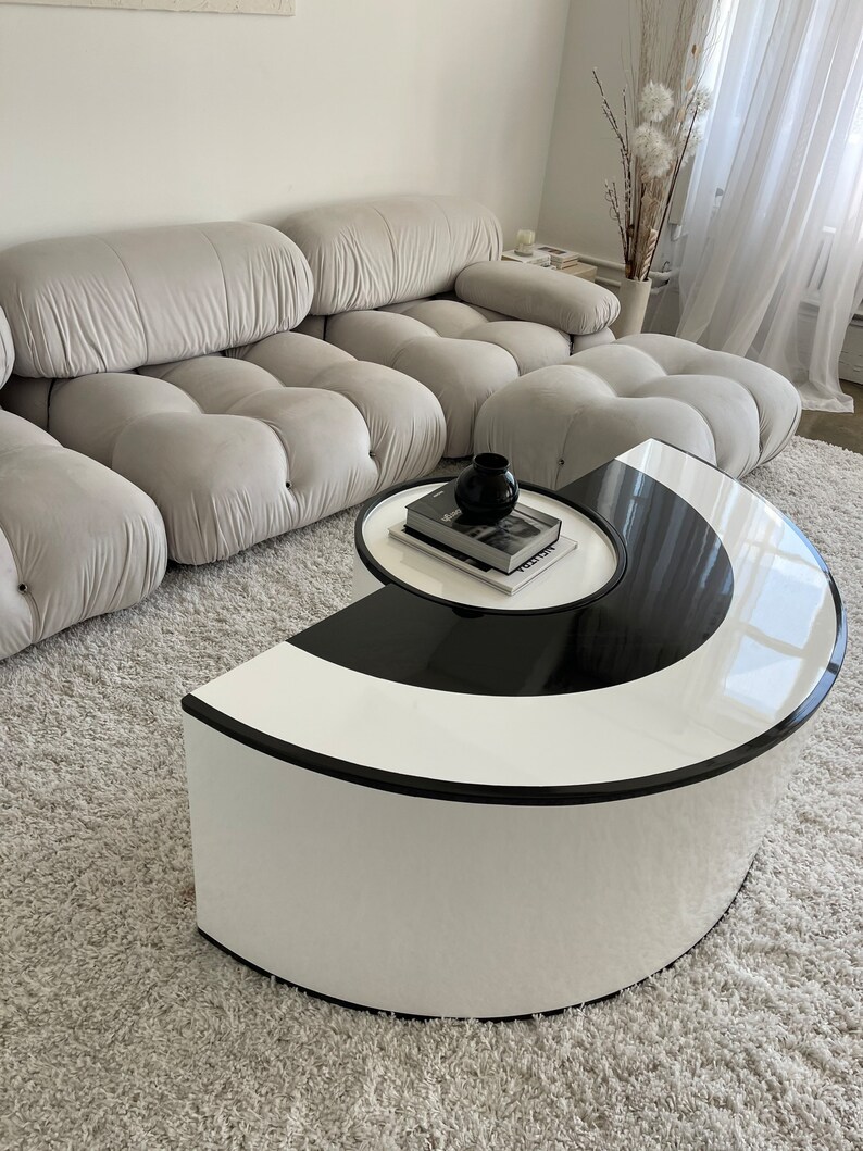 White Black Two Tone Finish Modern Coffee Table w/Swivel Top