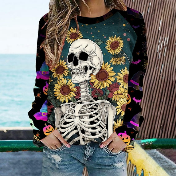 DailyTrove Women #39 s Halloween Long Sleeve Shirt Jack O #39 Lantern