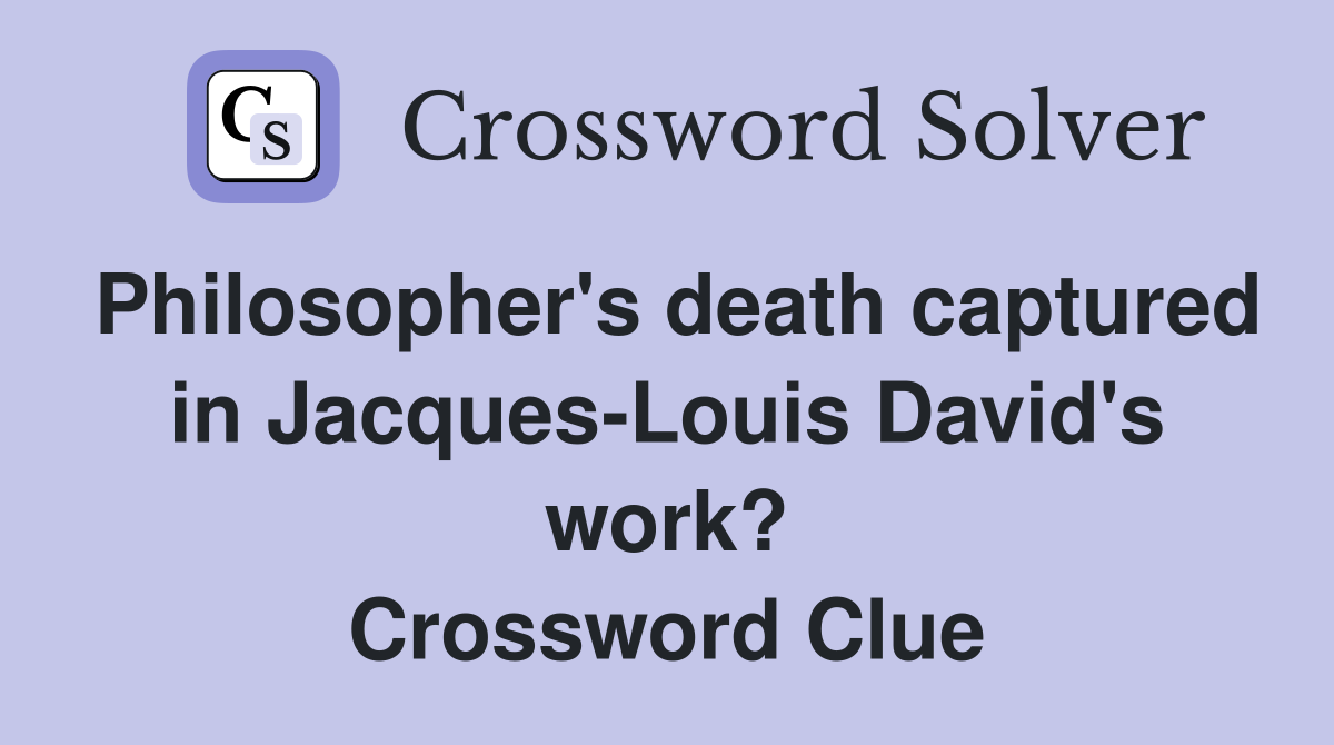 Philosopher #39 s death captured in Jacques Louis David #39 s work? Crossword