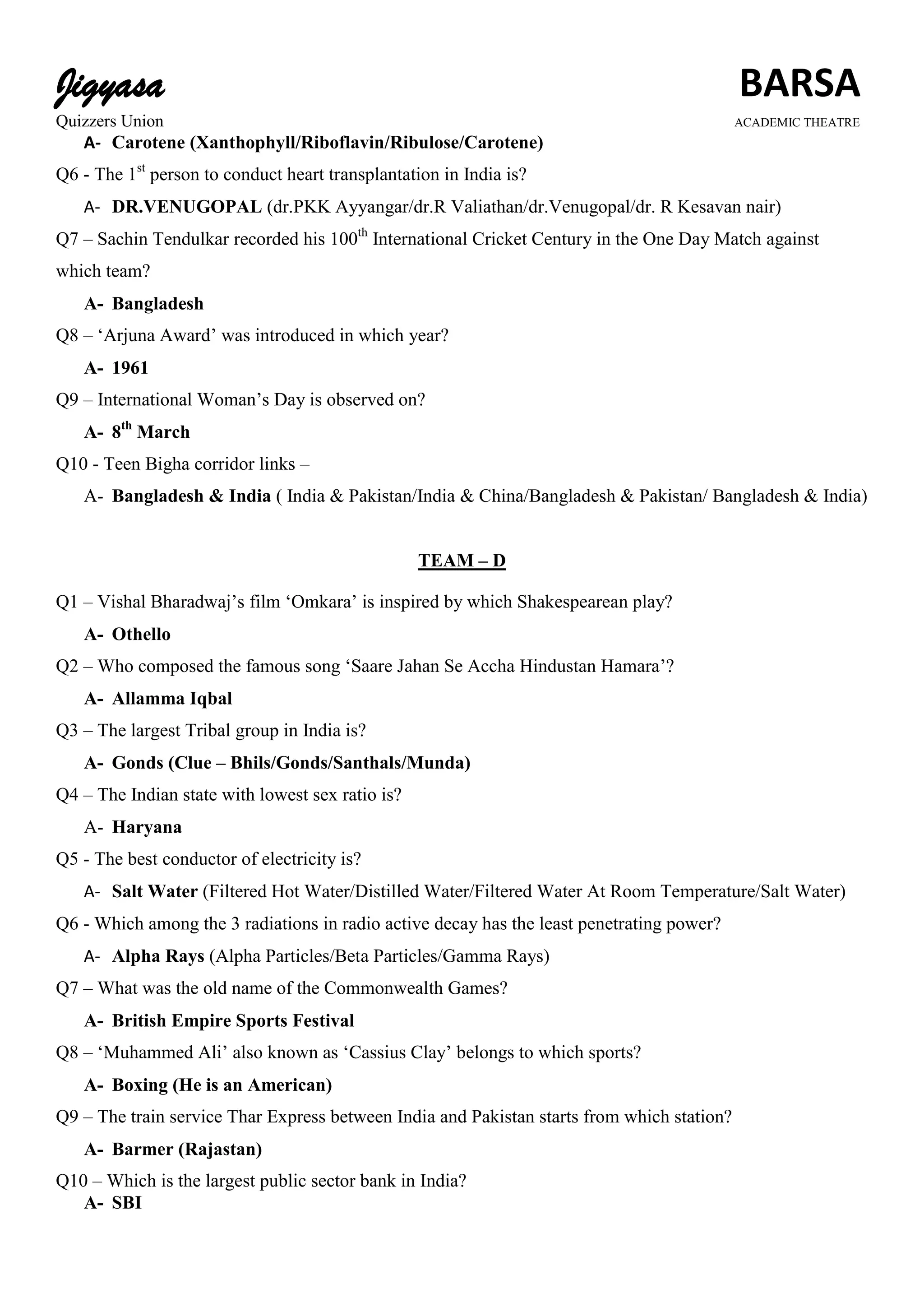 JIGYASA/BARSA Quiz questions PDF Hinduism Religion Spirituality