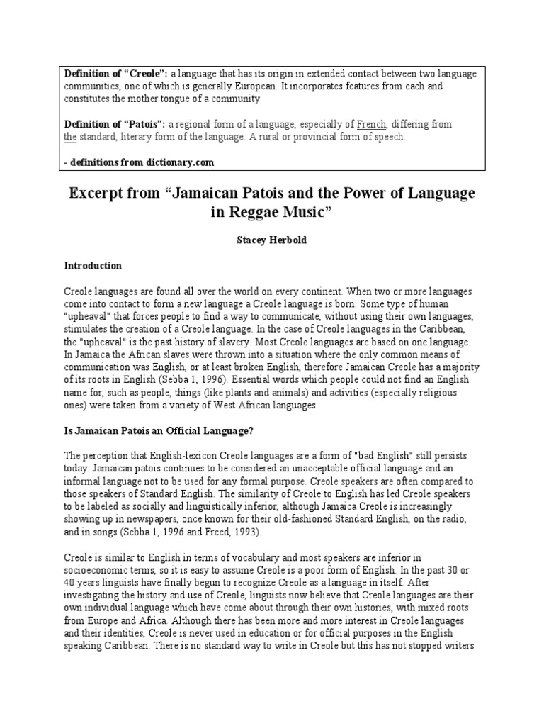 Jamaican Creole Language PDF English Language Linguistics