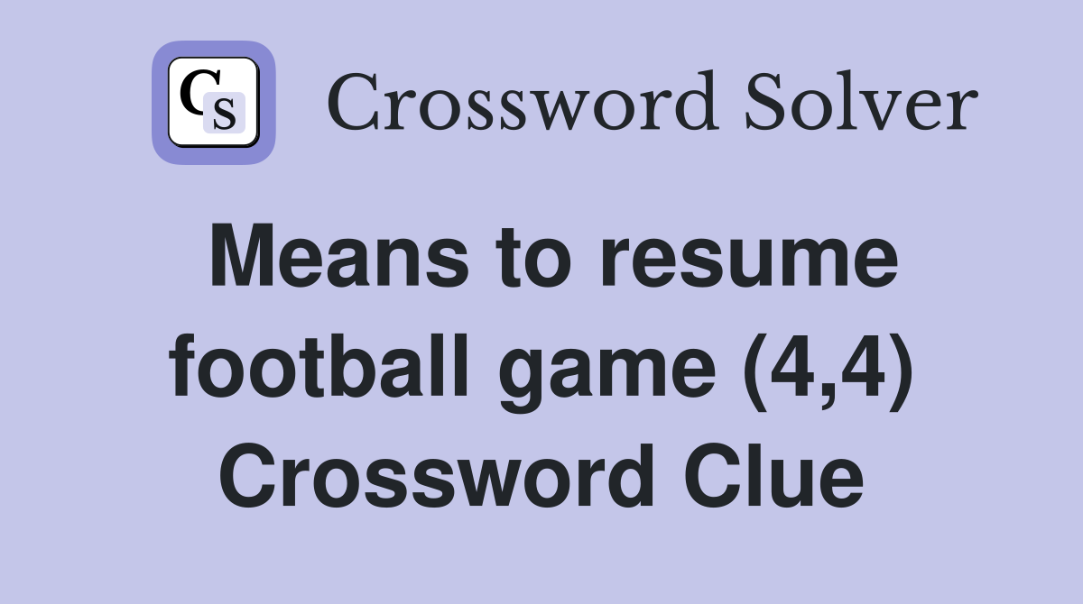 Means to resume football game (4 4) Crossword Clue Answers