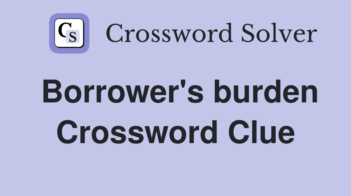 Borrower #39 s burden Crossword Clue Answers Crossword Solver