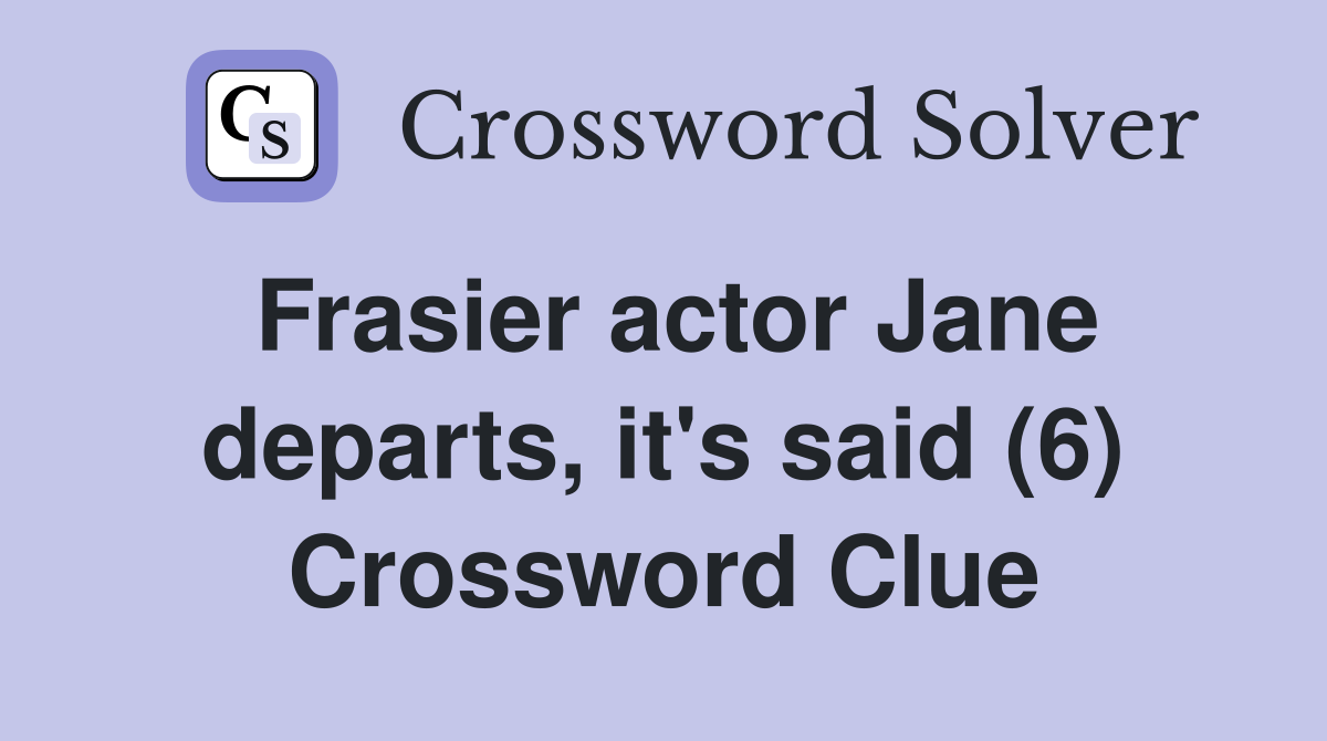 Frasier actor Jane departs it #39 s said (6) Crossword Clue Answers