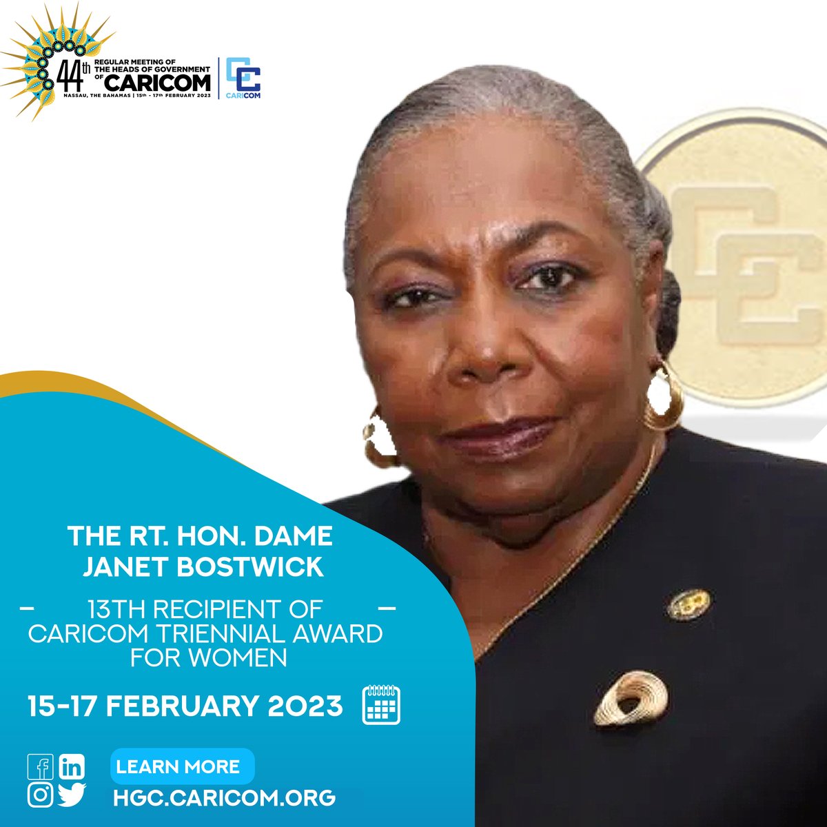 Dame Janet Bostwick Receives CARICOM Triennial Award for Women Second