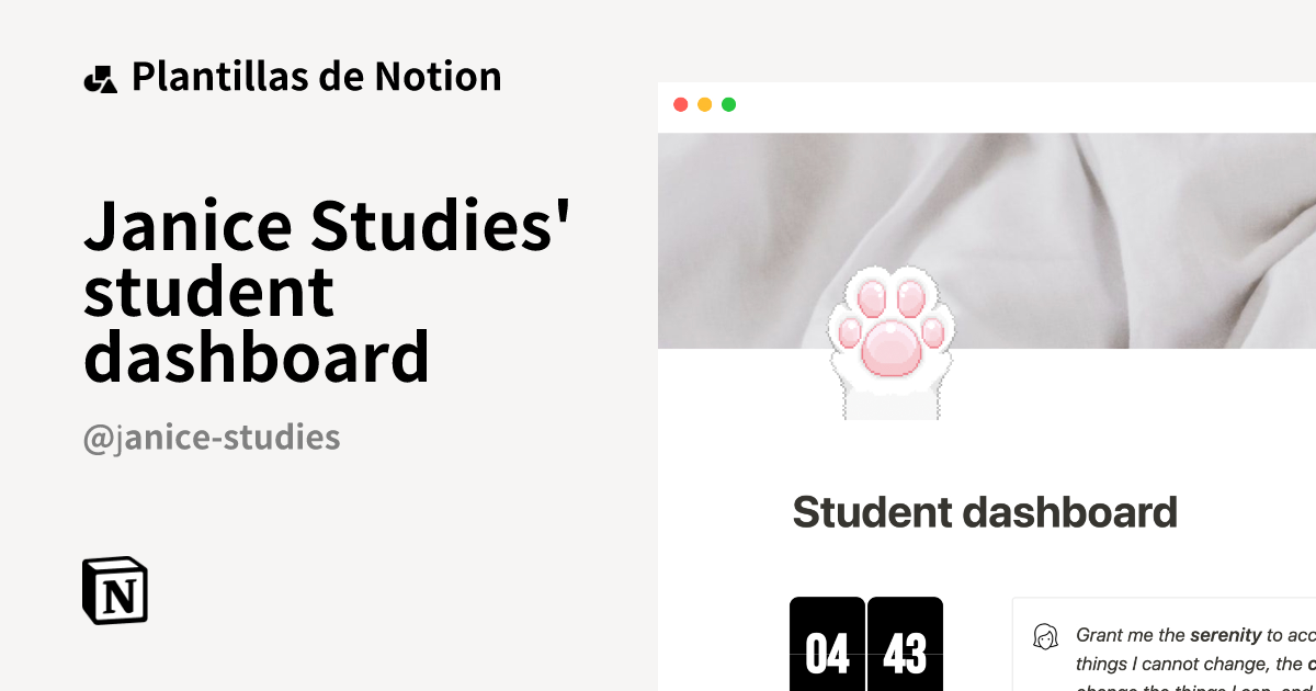 Plantilla Janice Studies #39 student dashboard Notion Marketplace
