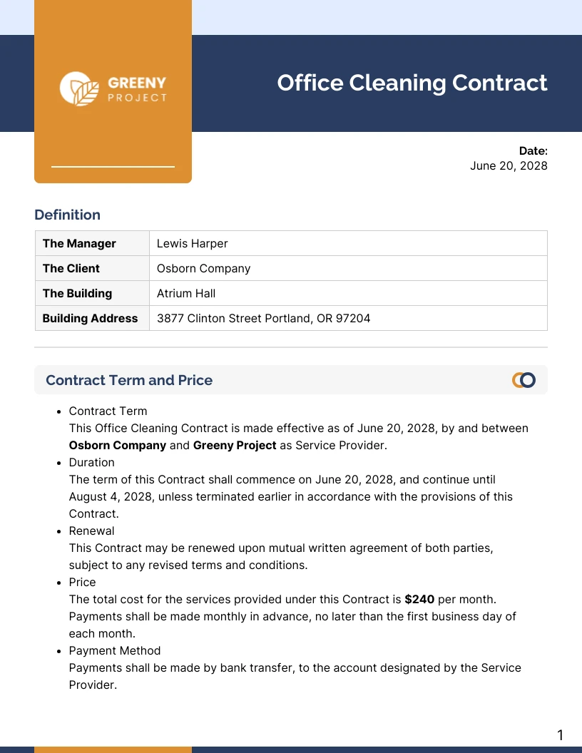 Office Cleaning Contract Template Venngage