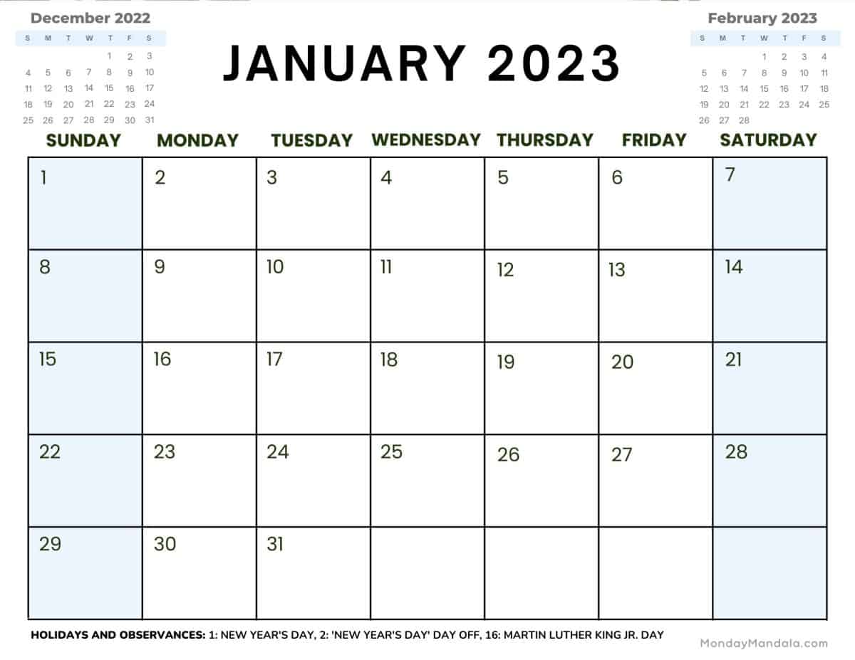 Blank January 2023 Calendar Printable PDF Templates 43% OFF