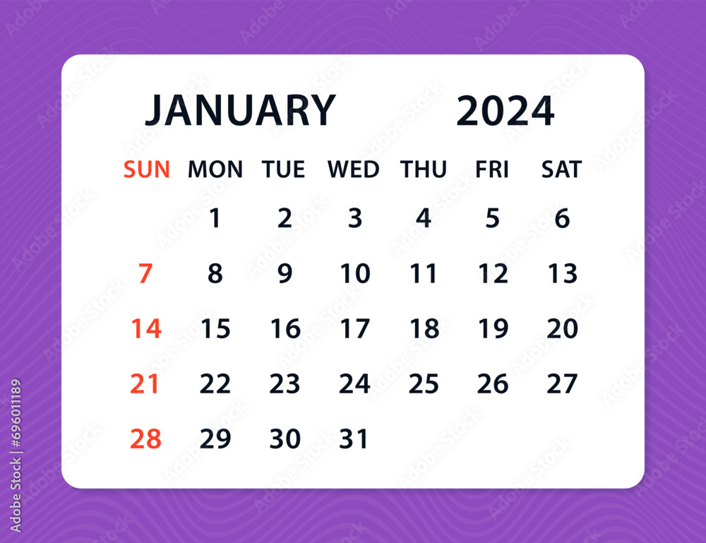 January 2024 Template Calendar 2024 Design Vector Planner Layout