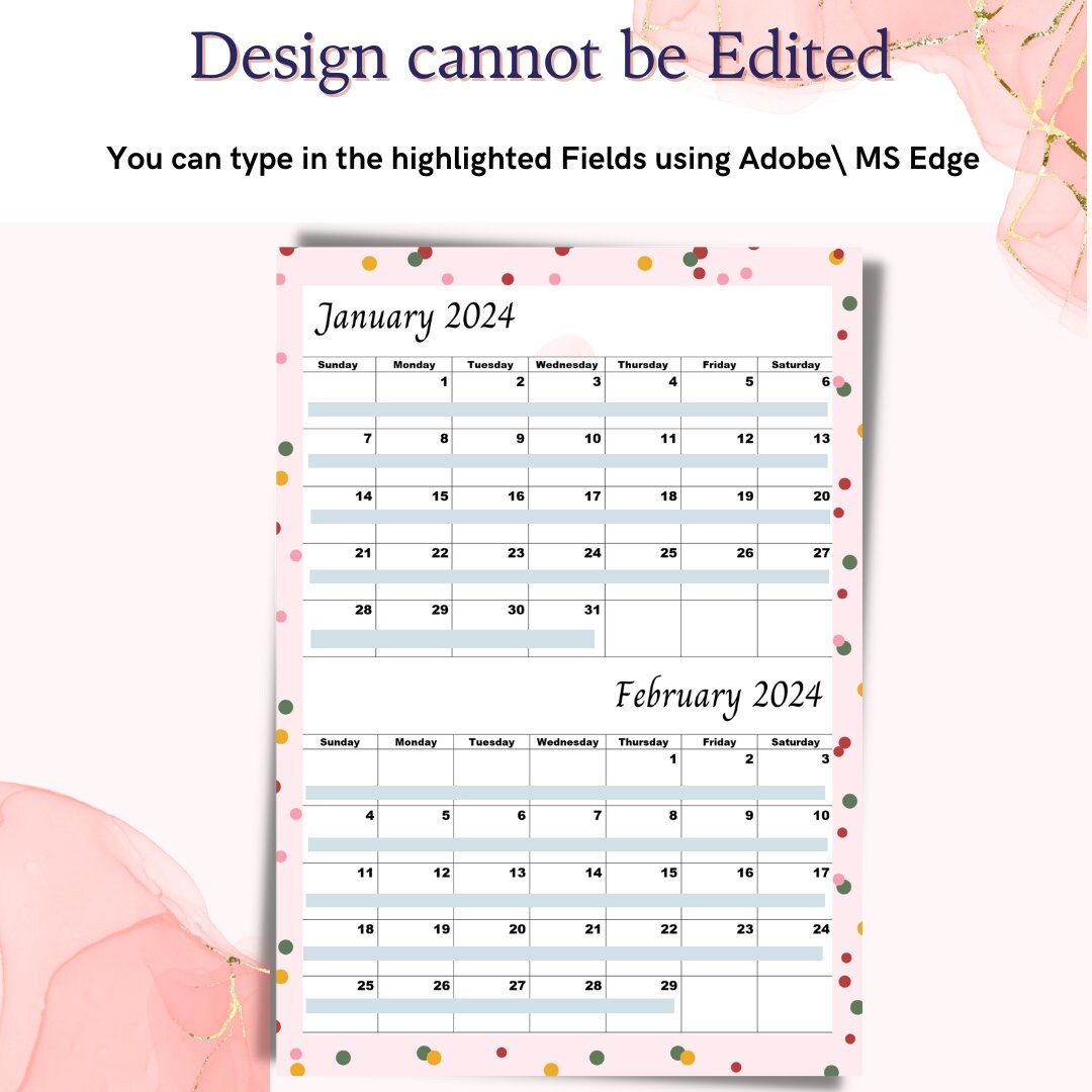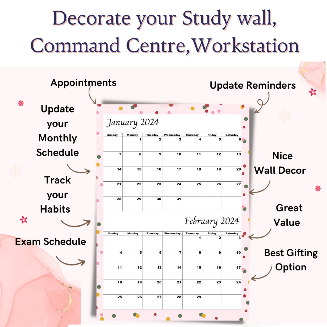 Buy January 2024 Calendar february 2024 Calendar pink jan 2024 Feb 2024
