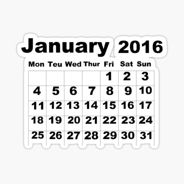 quot January Calendar 2016 quot Sticker for Sale by sweetsixty Redbubble