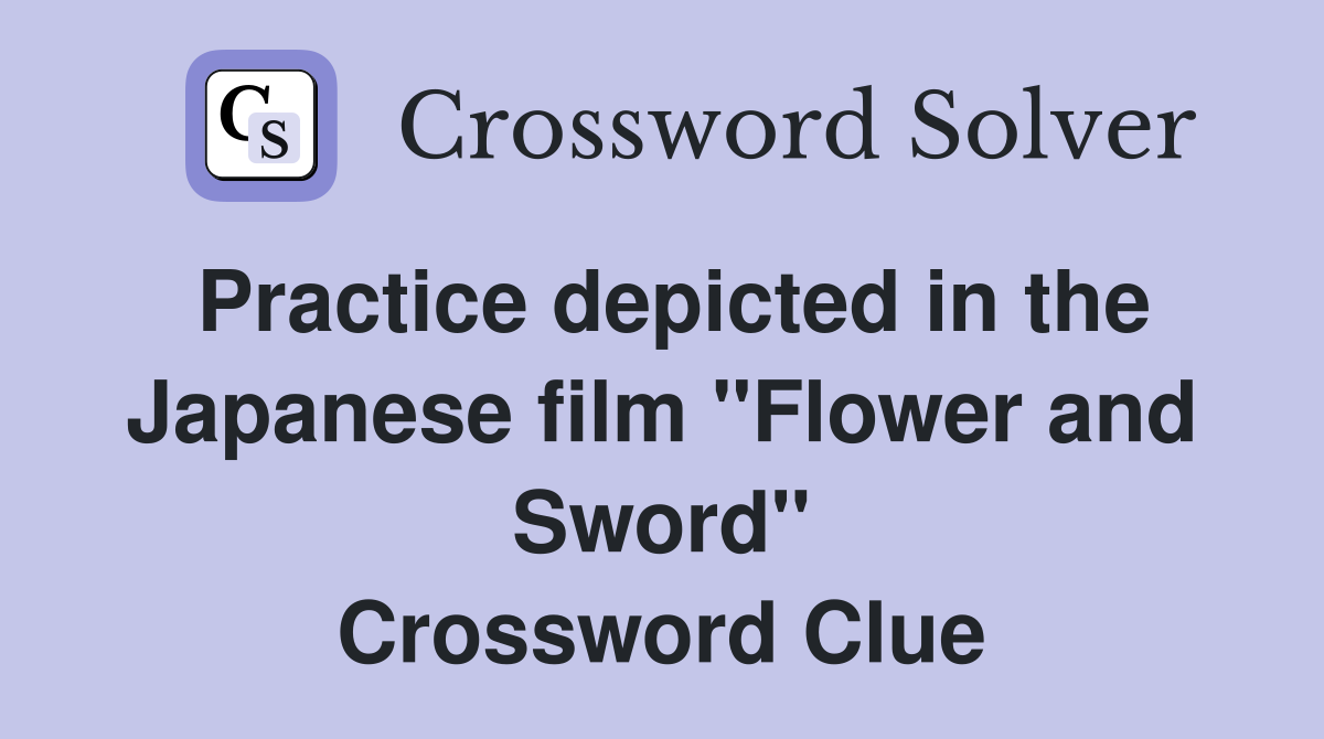 Practice depicted in the Japanese film quot Flower and Sword quot Crossword