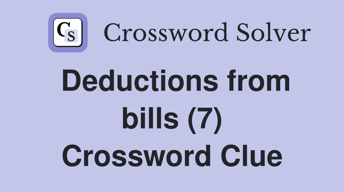Deductions from bills (7) Crossword Clue Answers Crossword Solver