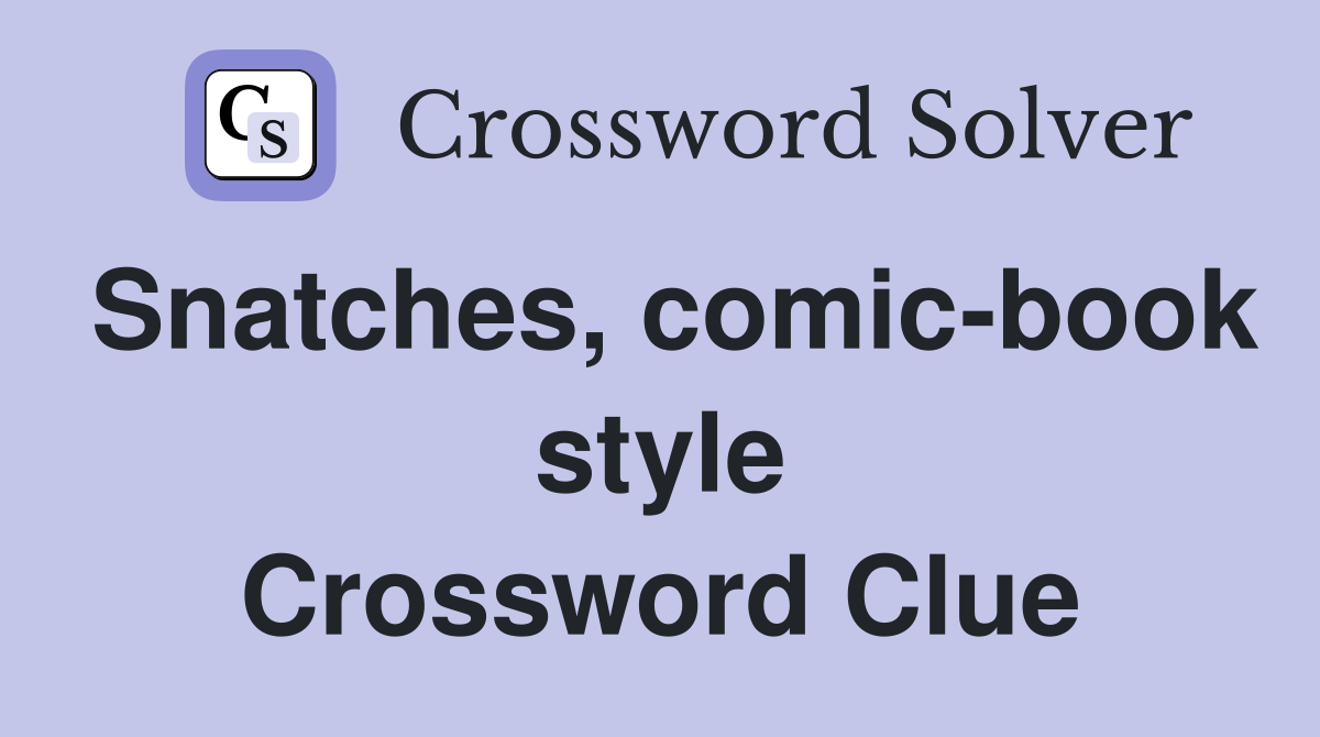 Snatches comic book style Crossword Clue Answers Crossword Solver