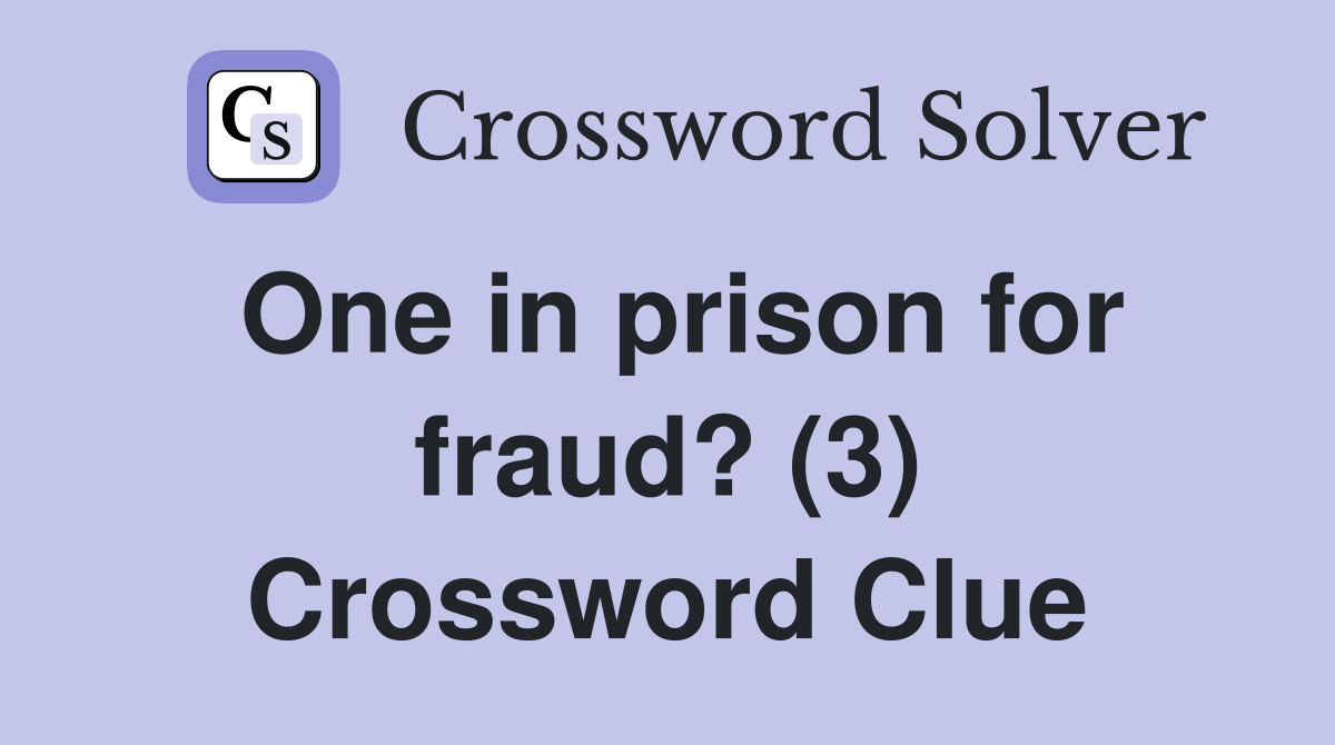 One in prison for fraud? (3) Crossword Clue Answers Crossword Solver