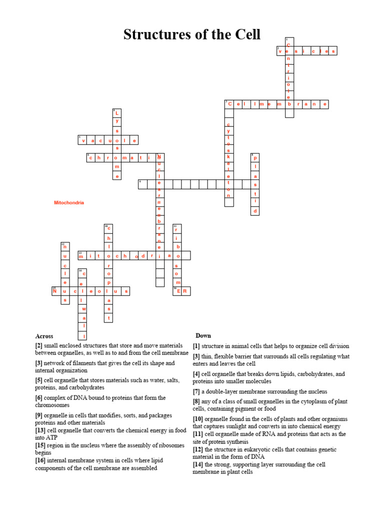Cell Structure Crossword PDF Cell (Biology) Organelle
